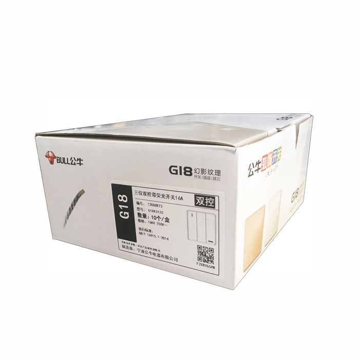 公牛三位双控带荧光开关